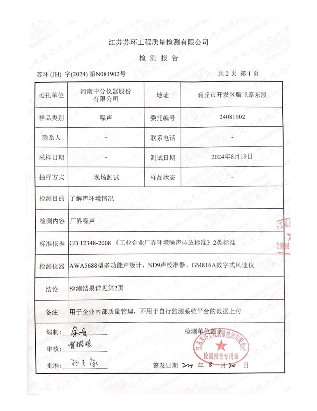 2024年度噪聲檢測報告